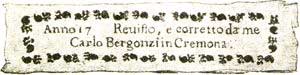 född i Cremona, Italien, 1683 (död. 1747). Carlo Bergonzi gick